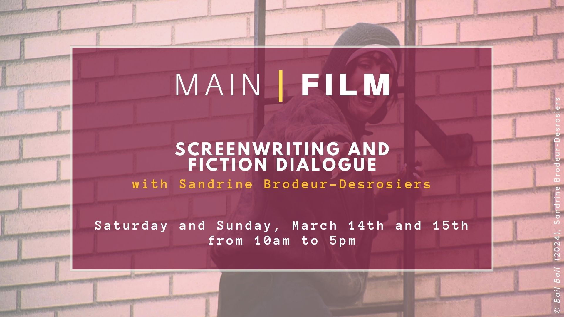 This 12-hour training course explores the basics of screenwriting, focusing on structure, point of view, and developing a personal narrative style. Special attention will be paid to character development and dialogue writing through group discussions and practical exercises. Sandrine Brodeur-Desrosiers will draw on examples from her own screenwriting practice to illustrate different issues and approaches to fiction writing.